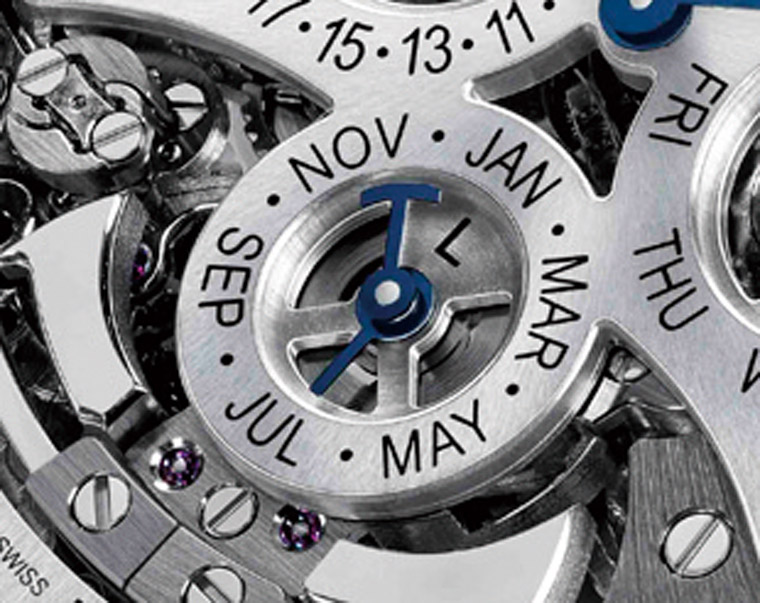 ▲视感最详实的腕表复杂功能 万年历功能不但能辨别大、小月,甚至平、闰年差异也能自动区辨,理论上每百年才需调校一次。