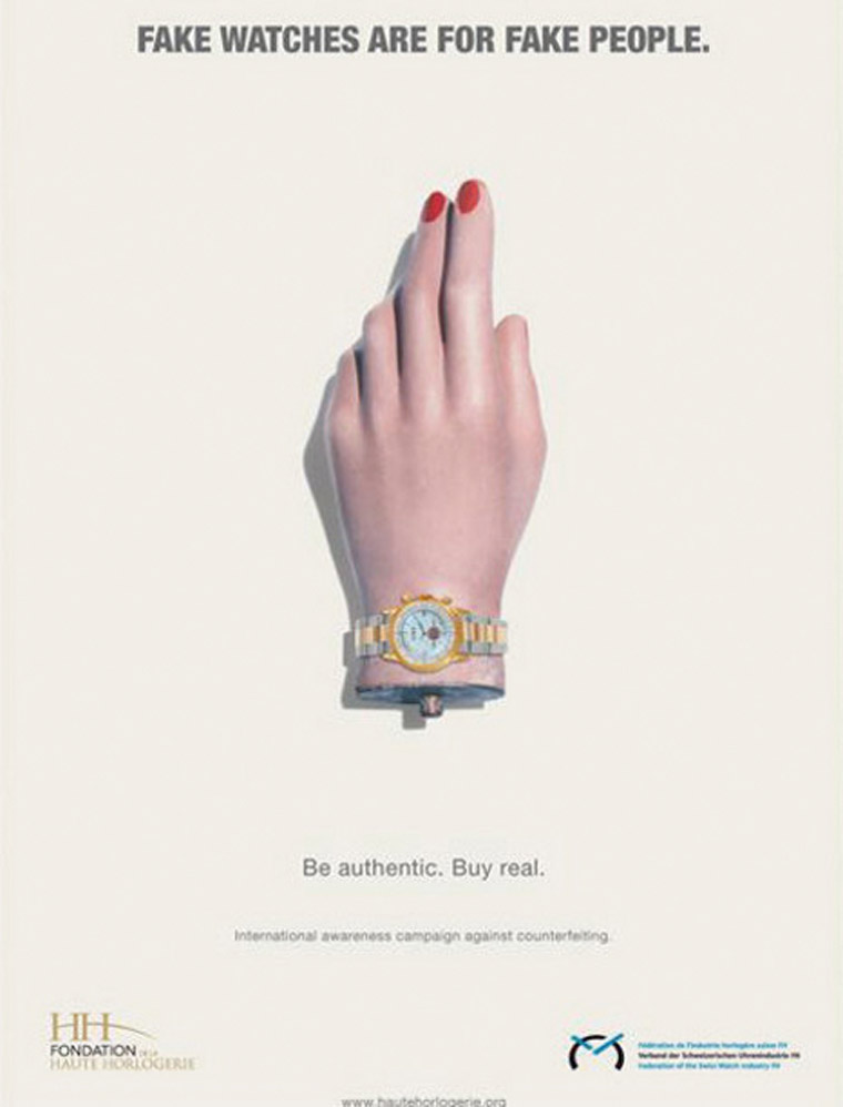 ▲几年前FHH曾提出"Fake Watches are for Fake People."的口号,希望唤起人们正视仿冒品猖獗的情形。