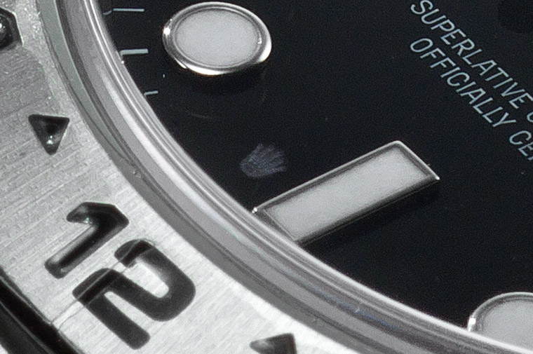 目前劳力士多数腕表在内圈可见鐫刻有"ROLEXROLEX"的循环字样,作为防偽的一道关卡。