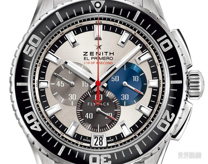 真力时El Primero系列的计时码表着名的叁色表盘也是呈下叁眼排列,甚至表盘还微微叠合。