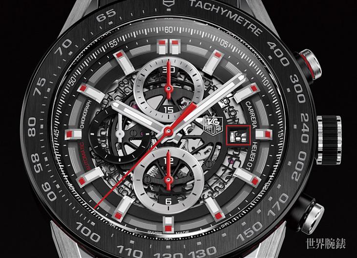 泰格豪雅的Carrera Heuer 01採用左叁眼常见的9点小秒、12点计分及6点计时格局。