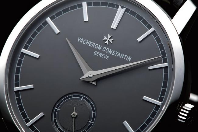 江诗丹顿于传承经典系列小叁针腕表上使用简洁的条状时标,并在12 点方向设有如同箭尾的变化。