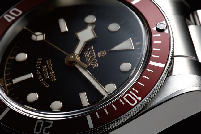 帝舵于復刻潜水表上以点状时标为主,辅以倒叁角形与矩形时标,并镶填夜光涂料强化识读性。