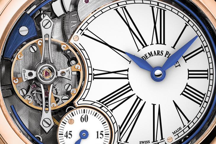 除此之外,Millenary Minute Repeater更设有时间调校摆轮停止装置,可以确保腕表在报时过程中,使用者不会因误触按把而导致腕表走时系统故障,爱彼透过每一个小细节装置出Millenary Minute Repeater的高精准度与出色报时声音。