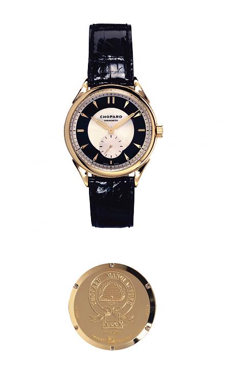 实底盖设计下蕴涵L.U.C 9.96 自动上鍊机芯,并且在底盖下方鐫刻有QF认证的字样与标记。