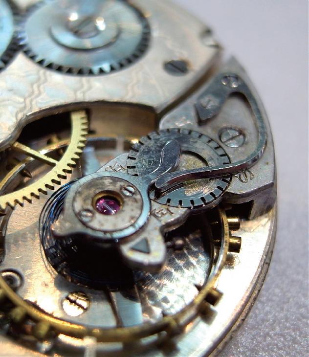 这一种调校方式跟上一种的原理类似,以小乘以小会更小的方式,进行两段式的复合式调校设计,因此都可以达到相当精密的调校效果。虽然机械概念上并没有特别大的突破,但是藉由特殊而美观的星形与罕见的T 形设计,我们仍可嗅得美国制表业当时活泼并多元的气息。