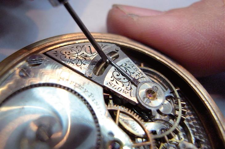 就先前所阐述的,调校走时的快慢不脱离两种方式,其一为调整游丝的长短,其二则是改变摆轮的配重;在本期中我们将为您呈现的叁种特殊调校装置,都是以调整游丝长短来改变摆速的设计,这些装置出现在早期的美国怀表、瑞士怀表,甚至英国怀表中,但是为什麼后来这些优实的设计会逐渐式微,我们可以大概归纳出几个主要肇因:一为二十世纪前叶接连发生的大战,让美国将产业重心移往军火发展,使得鐘表的成长渐趋迟缓、停滞;二为早期怀表内的体积较大,因此发挥的空间也较多,进而便于衍生出许多型态的装置;叁则是进入现代以后,为了方便大量生产,表厂会倾向选择构造简单、容易拆卸、故障率低的设计,因此趋向同一化,花样也不再这麼多变。