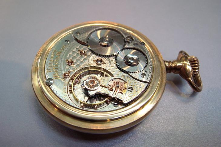 这个机芯是1910 年代,由美国的鐘表品牌WALTHAM出产,五方位调校的23 石机芯。