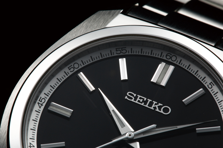 面盘的样式也跟标准的SEIKO Style不同,外圈刻度有到1/4秒,而且跟面盘採用了双色调;时标除了边缘的钻石切割,正面还多了刻纹,3、6、9、12的中间还镶了夜光,整体机能感更强了。