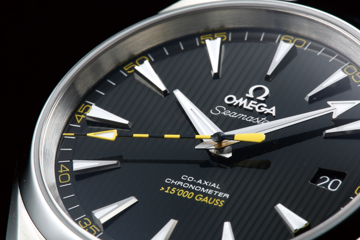 外观上最大的特徵就是它黑黄相间的秒针,相信无视它抗磁与否,纯粹迷上这根指针的玩家应该也大有人在;用黑黄针来标誌防磁的这种设计逻辑跟劳力士的米高斯异曲同工,颇有较劲意味。