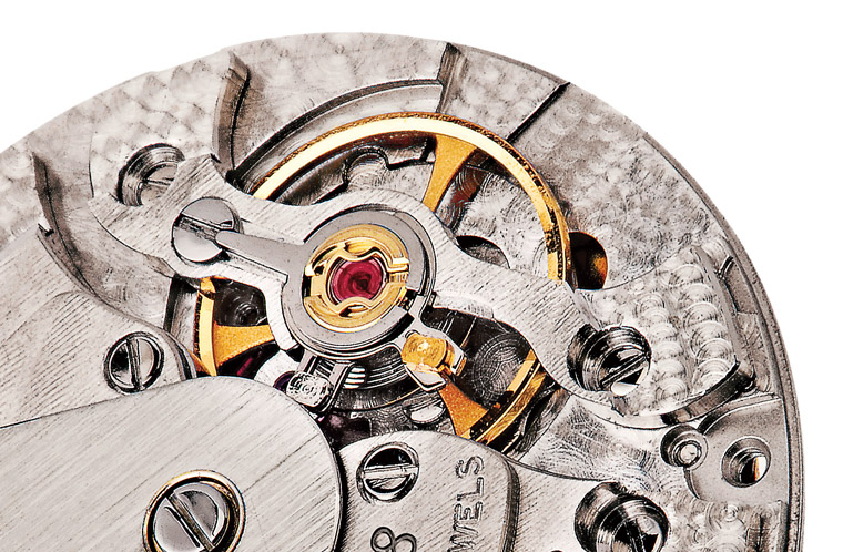 一般来说,众表厂在面盘底下的机芯顶板也会施以珍珠纹饰,展现其一丝不苟的制表态度。