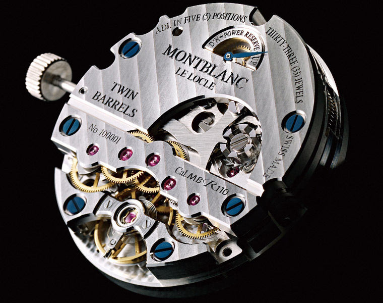 万宝龙的日内瓦波纹可与下方的MOSER机芯进行对照,同样是採斜向纹路,不过其採取便属于较传统的等宽形式。