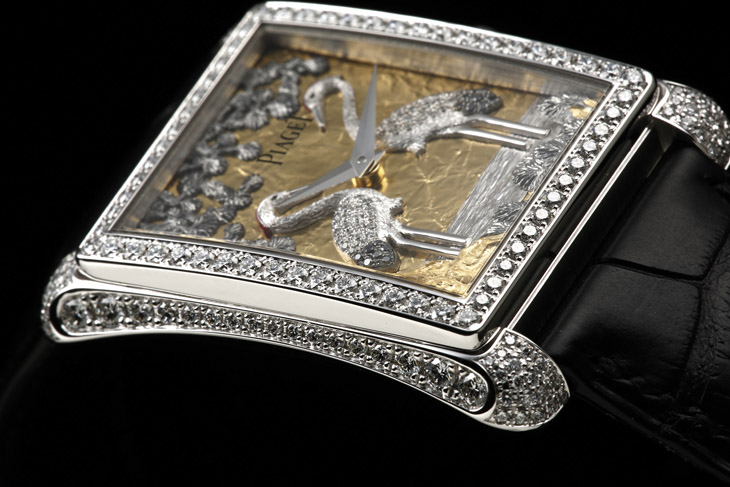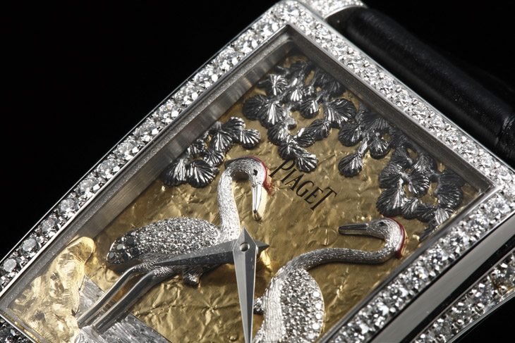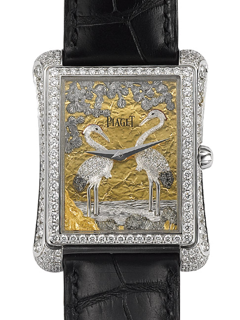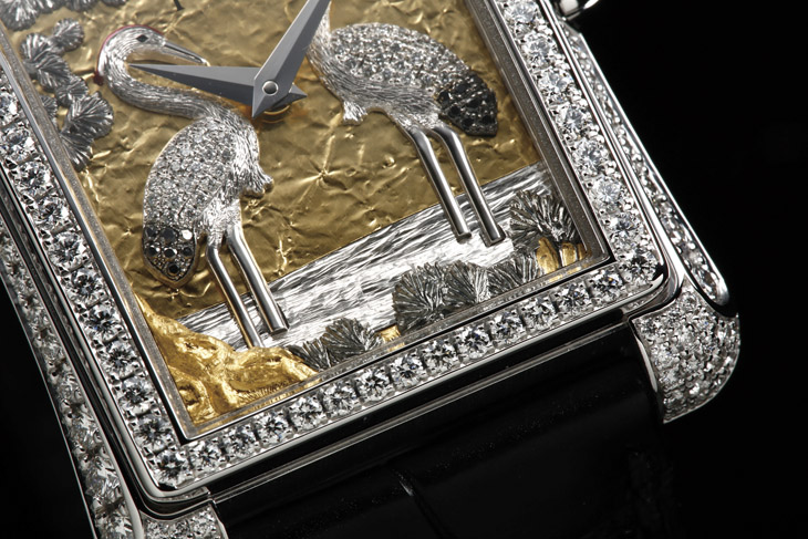 这次的A Mythical Journey系列一共包含了28款腕表和18件珠宝,规模比起龙凤套表犹有过之;今回介绍的这款双鹤Emperador自然是属于系列中中国这一边的。在作为一件奢侈品的价值上,这次的系列同样也是以传统工艺为卖点,将近五十件作品中用上了各式各样的工艺技法,其中像是微马赛克和刺绣等等更是相当稀罕的技巧,这款的金雕相形之下似乎没那麼少见,但其实以金雕表款而言这款的工艺价值仍然相当高。