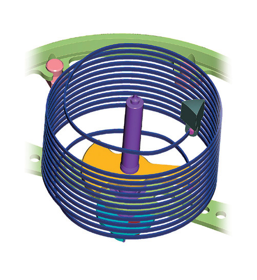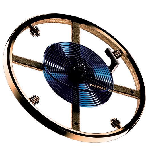 百达翡丽在2006 年推出的硅游丝,透过此图片,可看见一体成型的设计,这是由深活性离子蚀刻工序所制成。