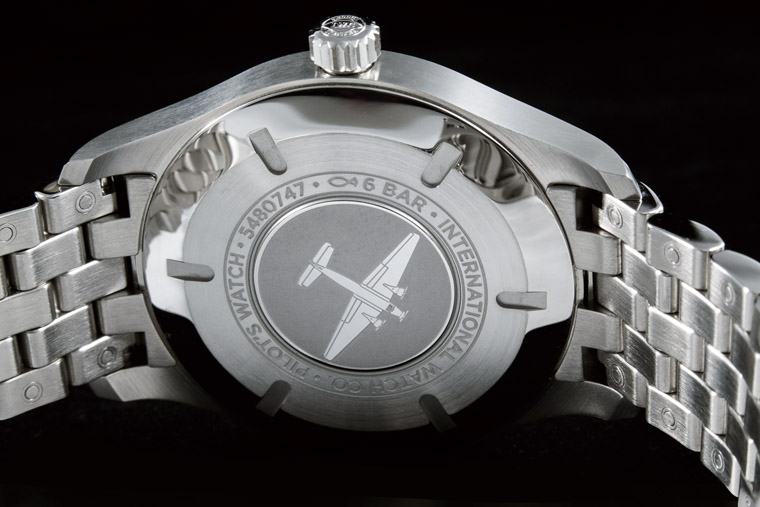 腕表底盖採用旋入式表镜还可以抵受骤降气压让腕表不致松脱。如前述章节提及,1943年IWC制作马克十,仅提供给英国皇家空军(RAF)使用,而1948年问世的马克十一,成为英国皇家空军和导航员的官方时计,当时对机芯的要求十分严苛,也因此才能缔造IWC马克的传奇。而为了能够追本溯源,腕表背面鐫刻容克斯JU-52运输机(Junkers JU-52)的图案,不仅重申马克飞行表的DNA,也向马克的起源致敬。
