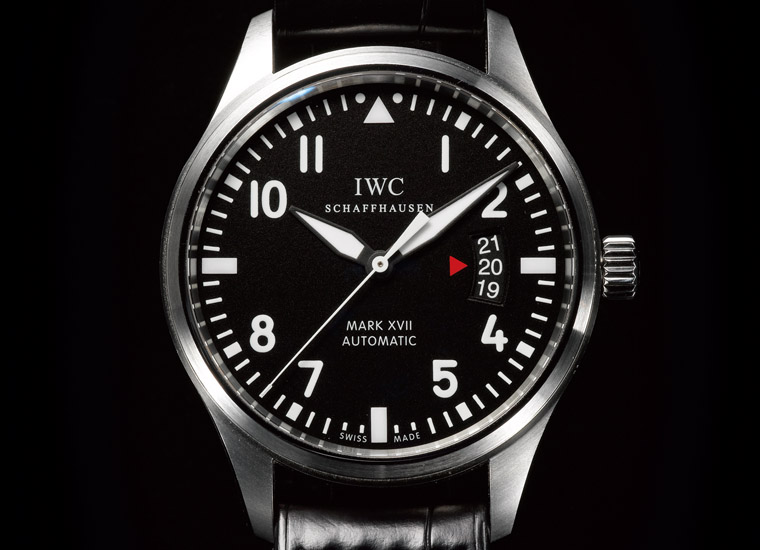 ▲IWC 2012年推出的马克十七虽然同样延续表款所有的经典特色,但特意将日期窗改成扇形显示,搭配一个红色三角形让佩戴者能够更容易读时。