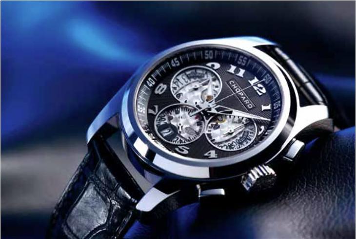 18K白金材质 / L.U.C 11 CF自动上鍊机芯 / 时、分、小秒、日期显示 / 飞返计时码表、小秒针归零功能 / C.O.S.C. 天文台认证 / 表径 42mm / 蓝宝石水晶镜面、透明底盖 / 防水30米。