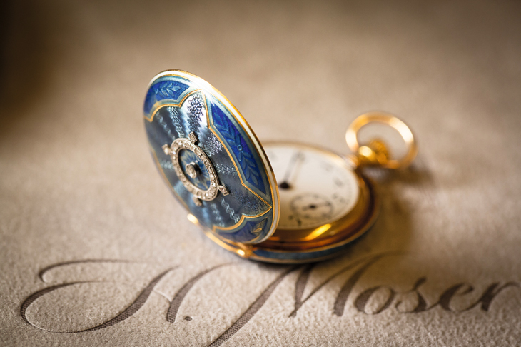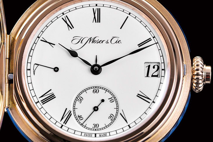 H. MOSER & CIE.在19世纪下半叶所推出的经典怀表,表盖以珐琅装饰,结合雕刻与镶嵌工艺,表壳的宝蓝色调与钻石相互辉映更显优雅细致,H. MOSER & CIE.以此臻品作为啟发,打造出令人「睛」艳的Perpetual Calendar Heritage限量版腕表。