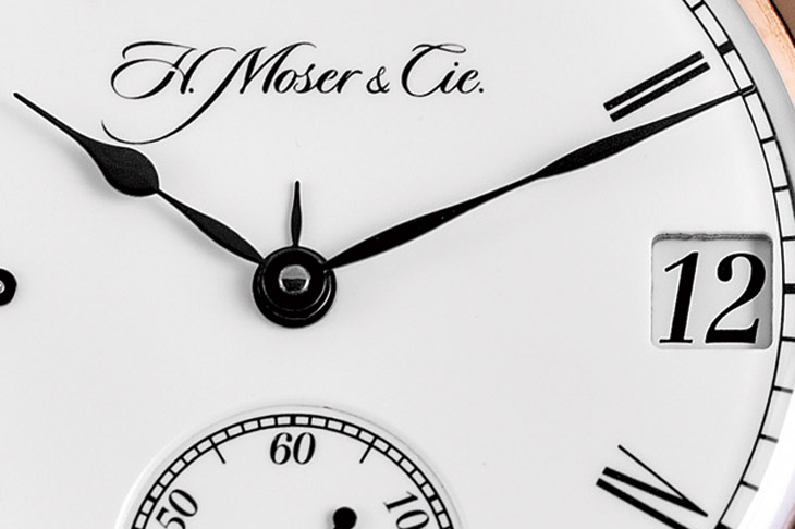 採用H. MOSER & CIE.高性能的HMC 341机芯,并且以18K纯金打造,在Incabloc避震装置中镶嵌着2颗托钻,独特奢华。