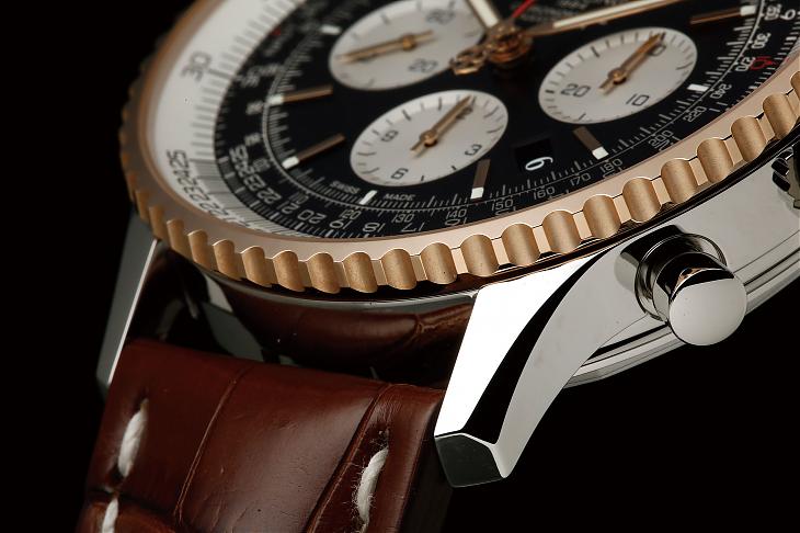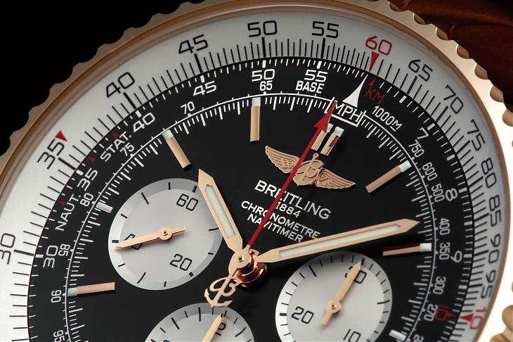 BREITLING百年灵在2009年推出了自制机芯,不过头几年只使用在Chronomat系列上,直到2012年才有搭载自制机芯的Navitimer。Chronomat和Navitimer是百年灵的两大系统,两个家族各有拥躉;如果从作工来看的话,Chronomat成型繁复的四点金表圈比较能看出百年灵优秀的金工,不过Navitimer精密的飞行滑尺所呈现出来的面盘制作技术同样是品牌的绝活之一。
