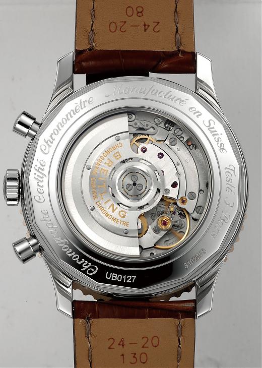 百年灵刚推出自制机芯时只有特殊款式有透明底盖,儘管现在也有愈来愈多一般款式做透明底盖了,但43mm的Navitimer仍然是实底盖,比起来46mm的有机芯可看也成了另一个卖点。