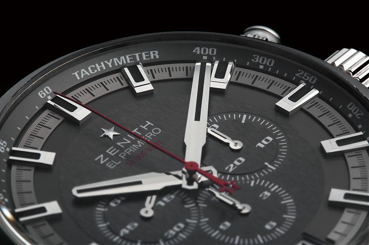 表款搭载经典的El Primero机芯。机芯的直径30mm,表径却高达45mm,不过机芯和底盖外缘的距离并不会很大,因为中壳由上往下有逐渐内缩,在佩戴上也让表壳更加贴手。