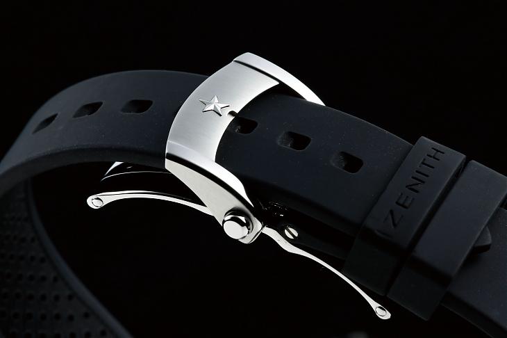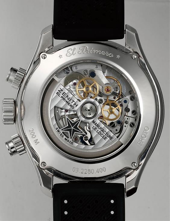 El Primero 400 B自动上鍊机芯 / 时、分、小秒、日期显示 / 计时码表功能 / 橡胶表带、蝴蝶扣 / 蓝宝石水晶镜面、螺丝固定式透明底盖 / 防水200米