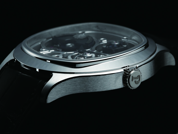 机芯上亦可见识到品牌的超卓工艺,包括以銼刀施展的手工倒角修饰及亮面拋光打磨,这些精妙的润饰为表作带来丰富艺术性。