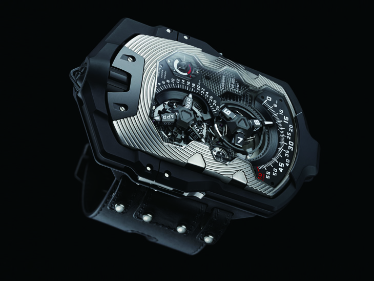 不断致力研发技术及美学上破格立新的时间显示技术的URWERK,数年前推出了外形犹如一艘旗舰太空船般的UR-1001,以前所未见的大表径与独特的显时方式为表界带来惊喜。在2015年的巴塞尔鐘表展览上,URWERK为这艘旗舰太空船换上新装,推出UR-1001 "Titan",其以鈦金属替代前作的AlTiN( 氮化铝鈦)涂层不锈钢表壳,并为其加配一条宽表带,呈现崭新的造型。