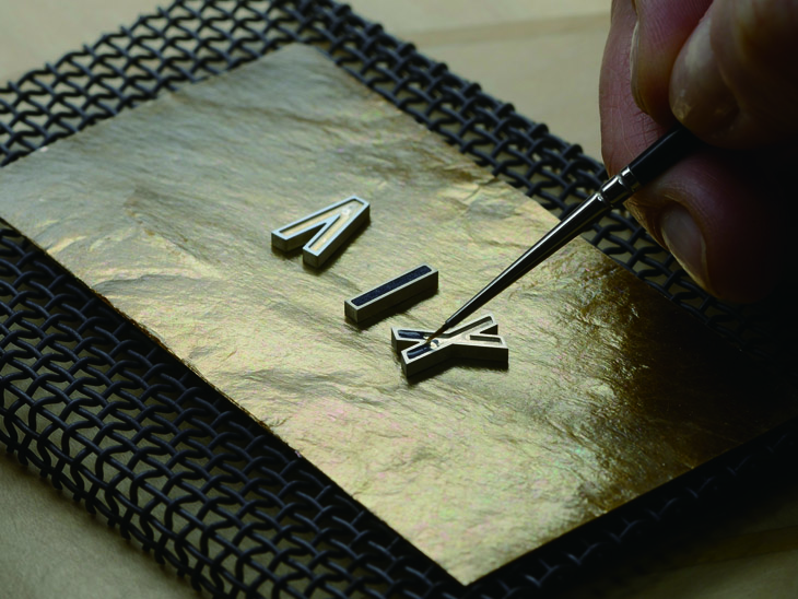 12个经缎面打磨的银质罗马数字经过逐个雕琢,其上以珐琅点缀。由于珐琅熔点为860℃,而银的熔点为900℃,因此这一步骤的操作必须掌控得宜。