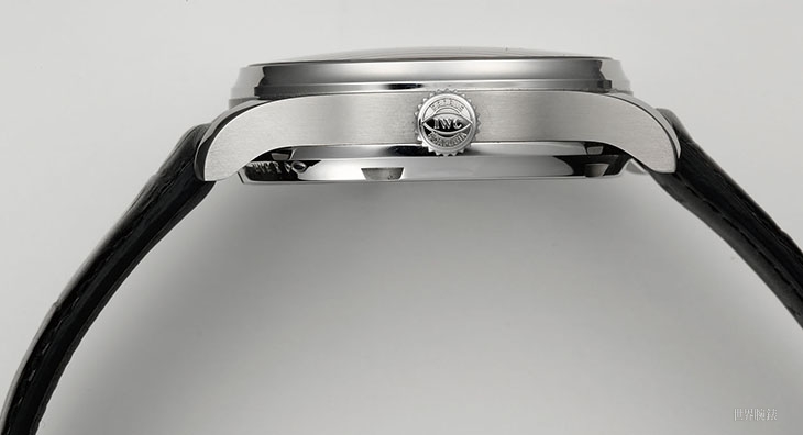 弧形的接面让表壳和表带间的空隙几乎完全被填满,这让表款在佩戴时视觉上也会显得更贴手;表带并未採用SANTONI的,这点从色泽就看得出来,不过基本上仍然维持了IWC的高水准。
