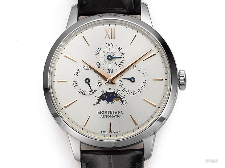 MB 29.15自动上鍊机芯 / 时、分、日期、月份、星期显示 / 月相显示、万年历功能 / 鱷鱼皮表带、一般扣 / 蓝宝石水晶镜面、螺丝固定式透明底盖 / 防水30米