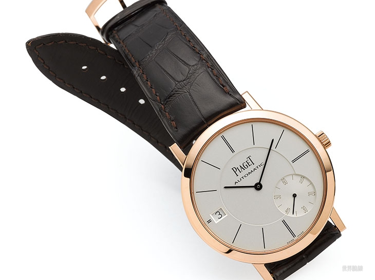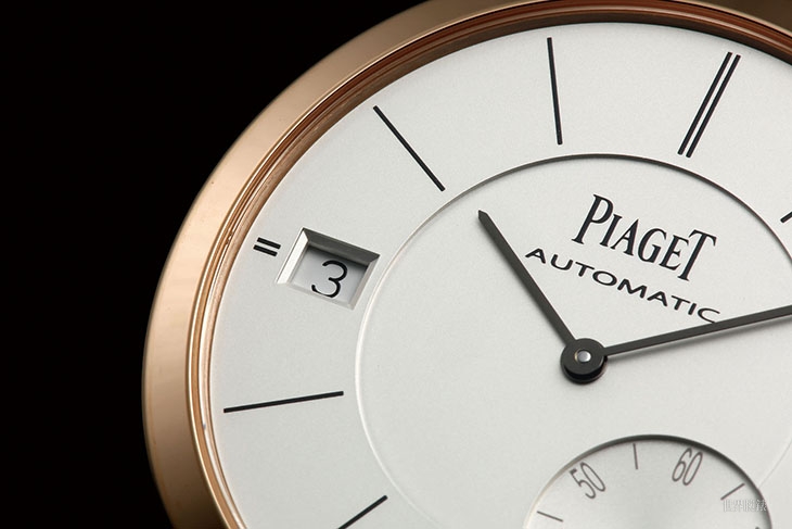 伯爵机芯的小秒针几乎都没有落在纵横的中线上,这也算是他们的特色之一了。薄型正装表以简单为美,小秒盘上的数字其实非属必要,不过既然日期已经机能化了,数字似乎也就无妨了。