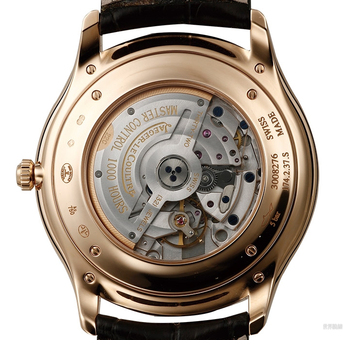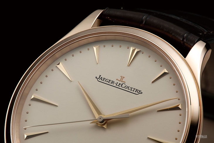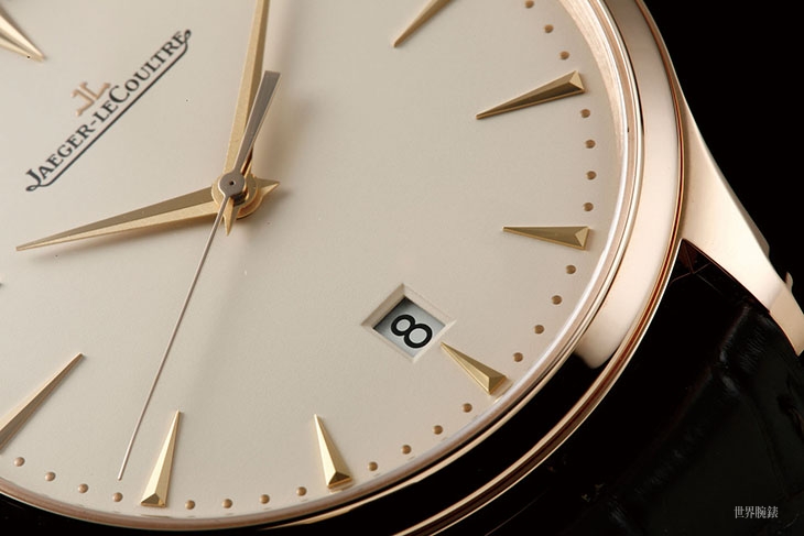 面盘上的分针和秒针末端有微微往下折,其中秒针稍嫌单薄了一点,反光起来的色泽也不太漂亮,有点可惜。不过时分针和时标的拋光都很亮,盘面本身的消光也很彻底,足见积家表面处理的进步。