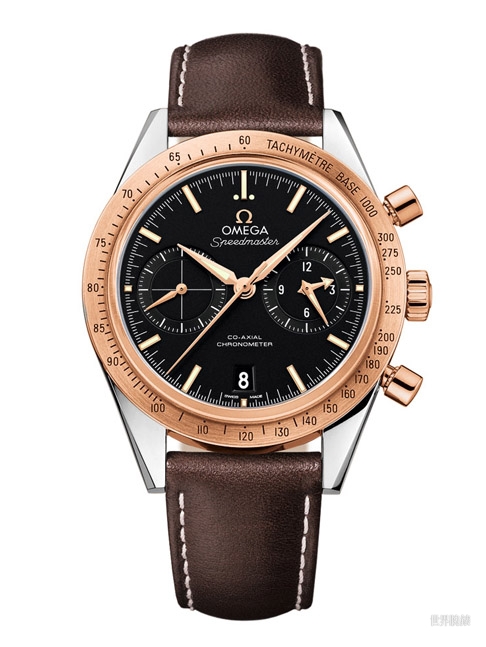 Speedmaster '57的表款备有不同金属材质款式,包括18K玫瑰金、18K黄金、轻盈鈦金属等等,此款为18K玫瑰金搭配不銹钢双色,提供用家多元选择。