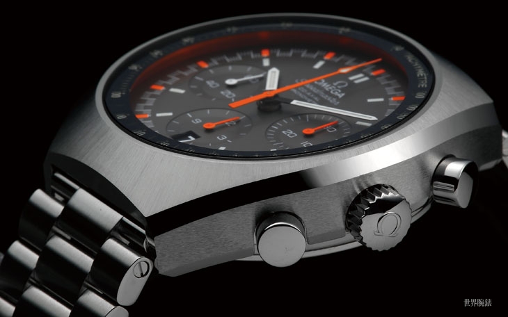 当年与登月表搭载同款机芯的超霸Mark II腕表,在造型上便是以当时所流行的桶型表壳(又称鲍鱼壳)重新建构一支子系列的发展骨架,厚实的质感赋予表款十足的霸气个性,而OMEGA更在表壳加工过程中交错运用倒角拋光与雾面拉丝等处理技法,让超霸Mark II的外观层次更形突出,由表侧观之可以看到表款虽仅採用不锈钢单一材质制作外壳,却因为精细的加工处理,让超霸Mark II的桶型表壳营造出自身特色。