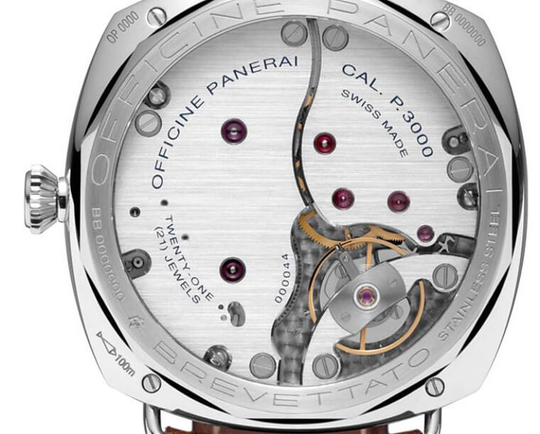 ▲搭载P.3000手上链机芯,是沛纳海于'11年推出的3000系自制机芯,厚达5.3mm,让表壳直径来到了47mm之大,佩戴在手腕上的强大存在感,很适合喜欢大表径的玩家们收藏。