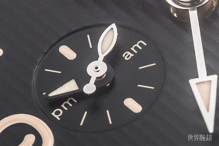 ▲位于九点钟位置的鱼雷小秒和24小时日夜显示在直纹式面盘上显得更为别致,搭配拥有Super-LumiNova夜光的经典棒状时、分针与数字时标,在夜间读时也可以清晰显示,帅度满点又不失实用性!