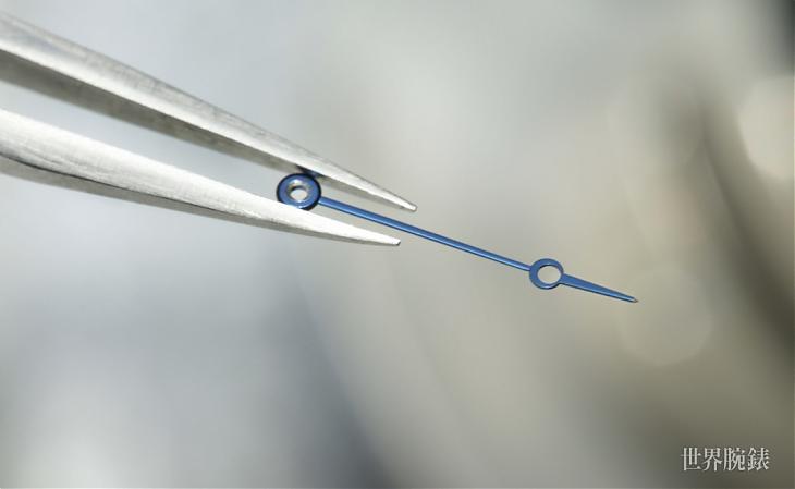 事实上,宝璣针是宝璣大师于1783年所设计的指针款式,特点是指针末端的1/3~1/4处有鏤空的圆形「偏心月」设计;而另一个特点则是通过烤蓝处理,呈现美丽湛蓝色的蓝钢指针。