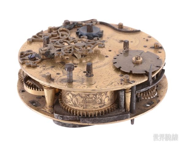 ▲图为约在西元1630-40年间法国制表师Jean Vallier的机芯作品,其中未见红宝石,机械零件直接固定在夹板孔洞中。