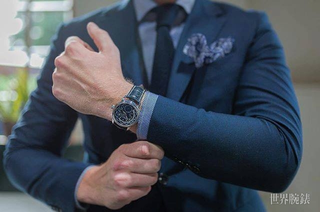 同样以蓝色调选用的配件可尝试在领结、腕表与胸口的袋巾提升亮度,搭配更吸睛、亮眼的单品,并维持整体和谐。