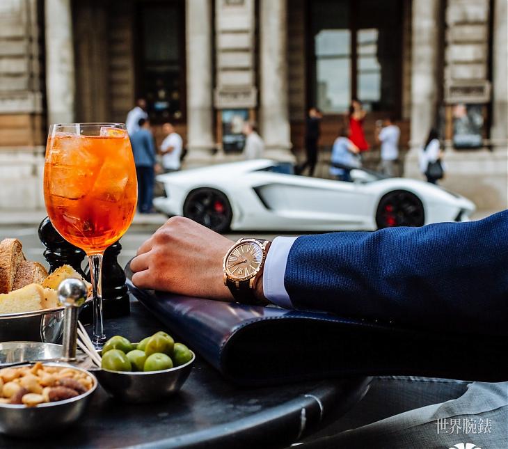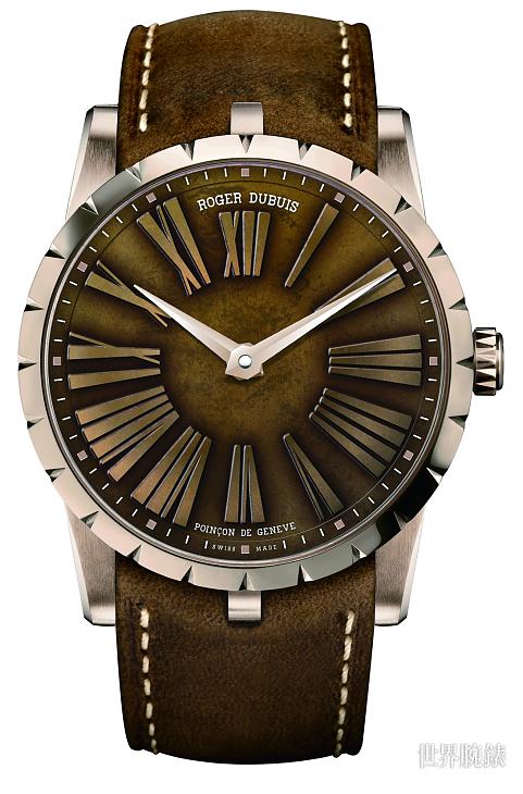 罗杰杜彼 Excalibur系列具有独特风采,表圈迷人的凹槽、放射状的变形罗马数字时标都是吸睛并且辨识度高的设计。Excalibur 42 深棕色特殊处理具有復古味的面盘,搭配玫瑰金稜角分明的表壳,虽不若对比色系的跳跃,更显和谐、沉稳内敛。