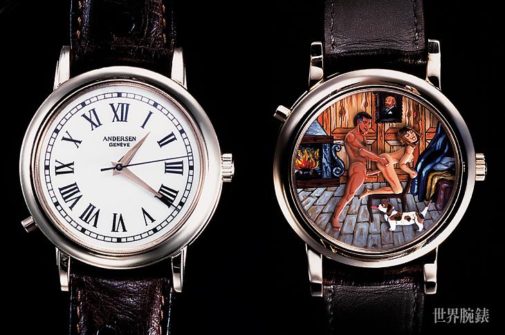 「春宫表」又称「风月表」源自17世纪末,制表工匠们为了满足贵族们的奢求慾望,同时又能反映出当代社会的风流韵事,春宫表就此诞生。春宫表的特色不仅在于有活灵活现的动作,在色彩上也表现的相当精致,如以珐琅彩绘绘制男女情爱之事,并以腕表的零件带动画中人物的肢体动作达到声音、动作一致的独特观感,彷彿看一场活春宫般的临场感,让佩戴者面红耳热。