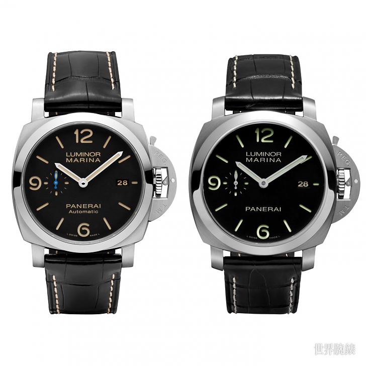 沛纳海全新的5款腕表实际上分别为PAM00312、PAM00392、PAM00359、PAM00499以及PAM00523的升级版,仅是将过去的型号加了一位数字而成为全新的表款,不论是外型或材质皆相同,但是在面盘时标的顏色以及机芯等部分则有其随时代进化的改变。另外位于9点鐘的小秒盘也加入了象徵海洋的元素——呈现显眼的蓝色指针。此外表壳的厚度也不同于以往,大幅降低厚度,给予腕更轻薄的设计。外型、材质乍看变动不大,但是佩戴起来的整体感觉却会有微妙的差别。