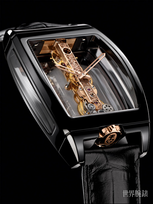 ▲Golden Bridge Rectangle的长方形表壳由知名设计师Dino Modolo打造,鏤空与直线排列式结构带来绝佳透视感。