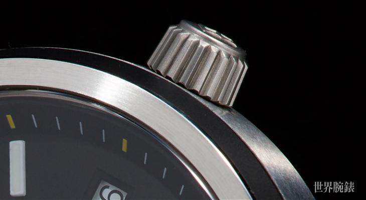 ▲表冠为旋入式的,确保防水性,冠身稍微呈现锥形,让手动操作时更加顺手。从这裡也可以看到表圈下层的陶瓷较上层的不锈钢来得宽,在遭遇侧向冲击时是抵挡的第一线。