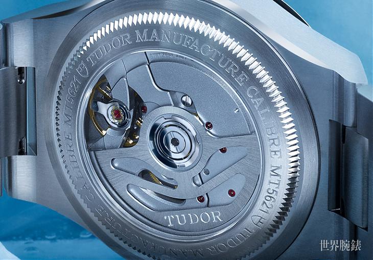 表款搭载5621机芯和Pelagos的5612相比,一是机芯的直径稍大,一是在9点钟多了动力储存显示。储能显示在帝舵(或是劳力士)是相当稀奇的功能,虽然在自动机芯、帝舵的使用者又极有可能是常时佩戴的前提下并不能说是很有必要性,不过考量到56系的动力储存有七十小时,用表人有可能戴着戴着就忘了补上链,因此多个储能显示也算是保险措施。