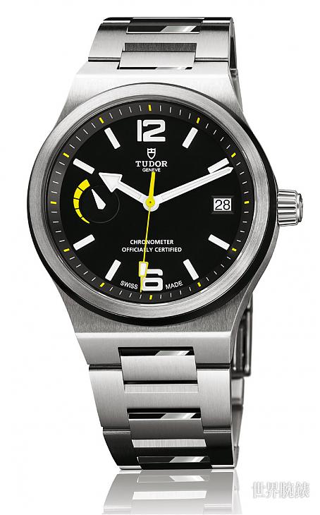 将陶瓷放在表圈下层技术上就不能防止来自正面的刮伤了,这是North Flag这种设计令人不解的地方,但由于它表圈的侧面有往外倾斜,因此下层的陶瓷可以用于抵抗来自横向的冲击;另一方面陶瓷虽然防刮,但在受击时却有可能整个碎裂,帝舵这裡不在正面使用陶瓷说不定也是为了避免这种状况。表款搭配链带或是皮带,不过即便是皮带附的也是摺叠扣。