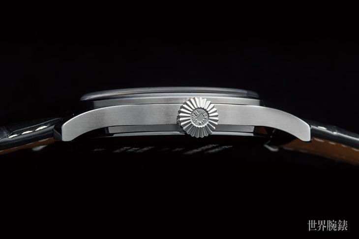 1918復刻军表虽然是从古董时计的基础上延伸出的表款,然而若是说起復刻款和原型不同的地方,最明显的莫过于復刻款一改原先的白色面盘,採黑色消光雾面的处理,除了提升读时的便利性,也有降低反光、提升隐匿性的效果,更切合了刚毅冷峻的军事风格;12点位下方的Logo字型、6点位的小秒盘也与原型表款有所不同,而且为了实用性,小秒盘下方新增日期视窗,表径也拉大到44毫米;表耳则从早期的战壕式线型构造改成现代感十足的设计,表带也得以增宽;表冠从空军表常见的洋葱型改为齿轮型,同时为了操作的方便性,在其表面饰以能增加摩擦力的沟槽纹;另外指针也做了调整,从原型的宝璣指针改为宽度更大、方便迅速读时的黑桃针,并使用了现代的镀銠工艺,增添精致质感。
