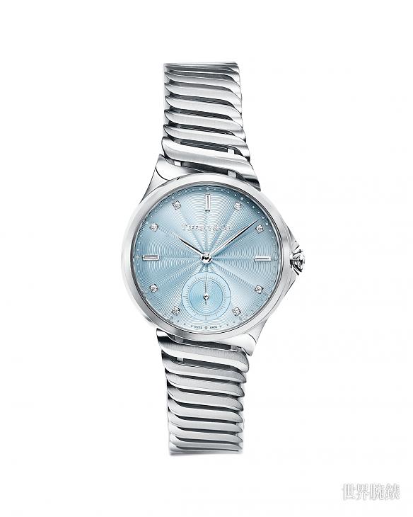 承袭女生对收到TIFFANY&Co.的那份期盼与喜悦,腕表面盘採用品牌经典的冰蓝色并饰以Flinqué饰纹,让看似朴实的面盘在不同角度欣赏之下带有隐约层次设计,适合懂得追求与欣赏生活中高质感事物的现代女性。实用的两针设计搭配充满线条S型链带,兼顾佩戴的舒适性,无论是日常工作或是晚宴场合都是才貌兼具的表款选择。